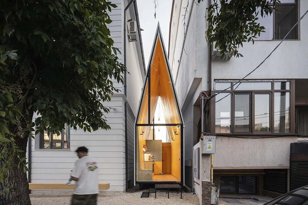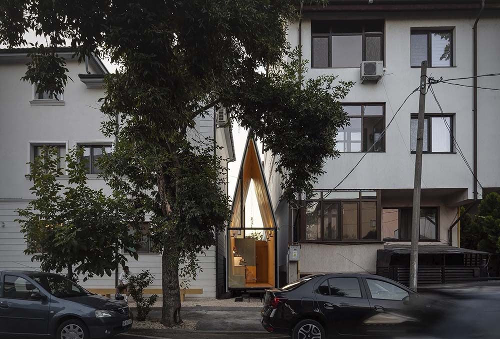 Soms heb je niet veel ruimte nodig. Architectenbureau Vinklu zag tussen twee huizen nog wel plek voor een heel klein café. Dat is The Chapel geworden, een zaakje waar je een heerlijke kop koffie kan halen.