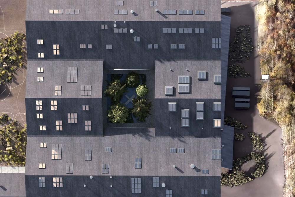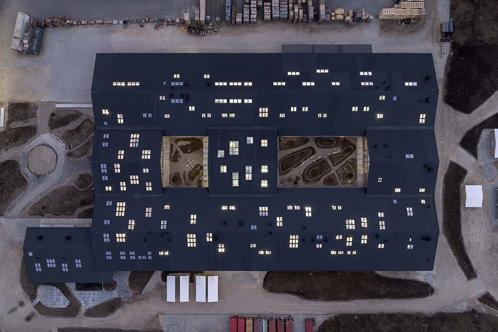 De prijsvraag die in 2021 werd gewonnen door Praksis Arkitekter, stuurde het project richting een respectvolle interpretatie van het bestaande gebouw: de herinnering aan de plek bewaren en tegelijk flexibiliteit creëren voor toekomstig gebruik. De prioriteit lag niet alleen bij esthetiek, maar ook bij de functionaliteit — werkplaatsen, laboratoria, co-creatieruimtes en testzones die mee kunnen evolueren met de behoeften van VELUX. Deze adaptieve aanpak benadrukt de levensduur van het gebouw en de meerwaarde van renovatie ten opzichte van nieuwbouw. Het materiaalgebruik — houten structuur, natuurlijke afwerkingen, patio’s en groene binnentuinen — legt een sterke band tussen binnen en buiten, waardoor de natuur de werkruimtes binnenstroomt en een innovatieve sfeer ontstaat.