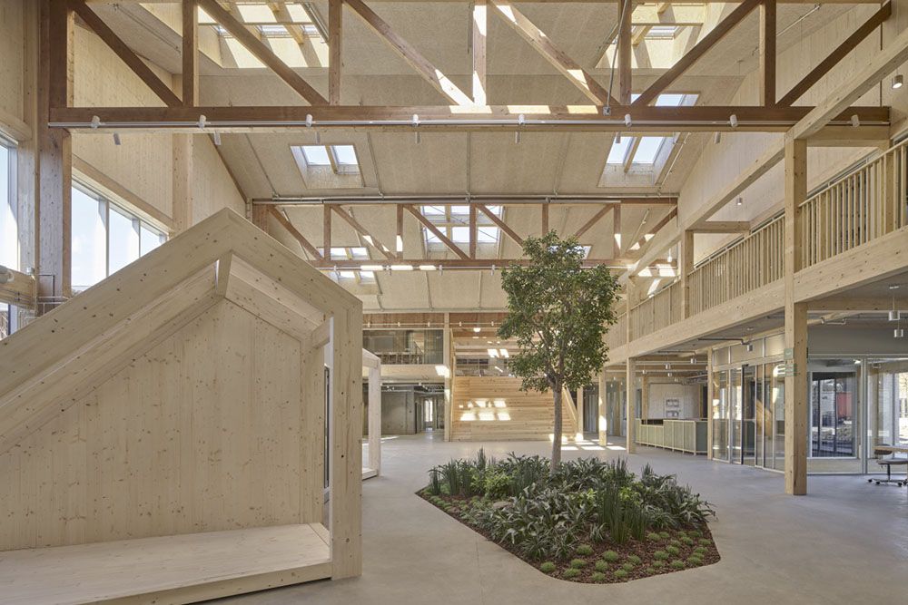 Technisch gezien bevat het gebouw meer dan 400 VELUX-dakramen en natuurlijke ventilatieoplossingen die de luchtkwaliteit, daglichtinval en passieve temperatuurregeling optimaliseren. Intelligente systemen werken samen om thermisch comfort te garanderen zonder buitensporig gebruik van actieve energiebronnen.