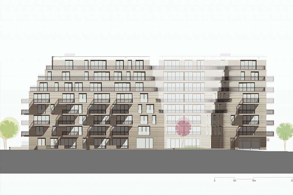 De koopappartementen liggen op de vierde tot en met de zevende verdieping. Bewoners kunnen kiezen voor uitzicht over het buurtplein, het doeplein, de Docklandsweg of juist op het groen van één van de tuinen. Naar boven toe trapt het gebouw steeds verder terug, waardoor royale balkons en terrassen ontstaan. Hierdoor is er ook in naburige bouwblokken en op de onderste verdiepingen altijd genoeg daglicht.
