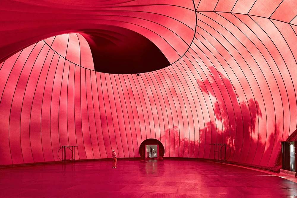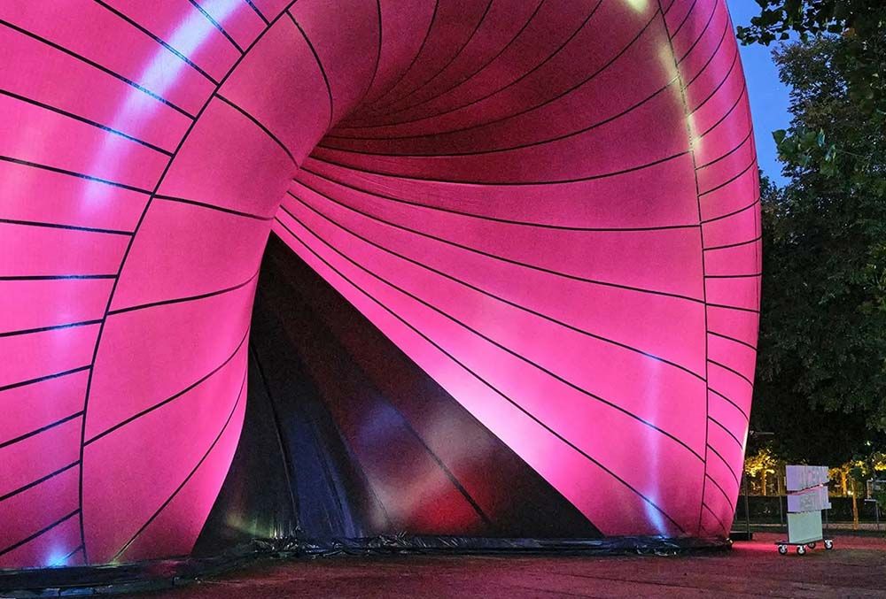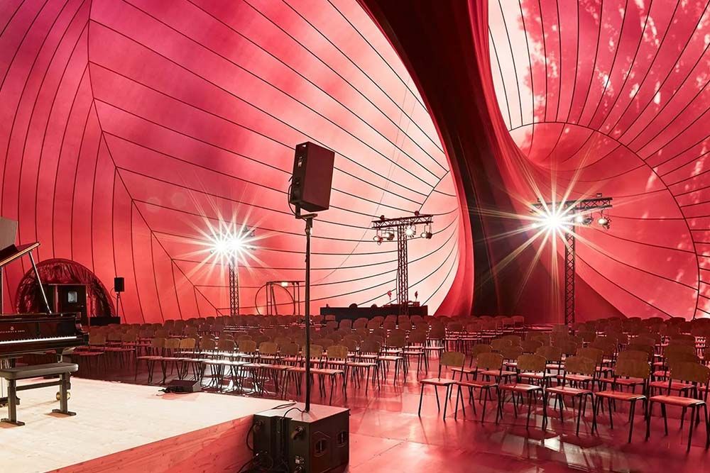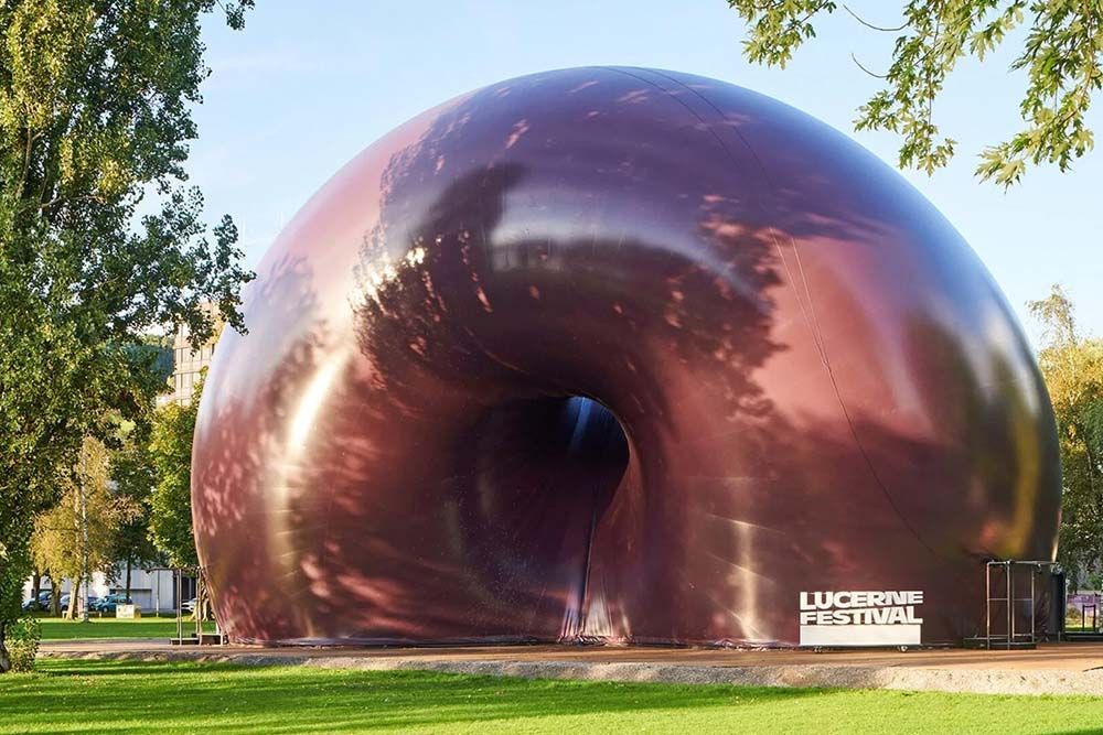 Tijdens het Lucerne Festival, een van de meest toonaangevende festivals voor klassieke muziek, is Ark Nova een van de locaties waar bezoekers een concert kunnen bijwonen. De programmering is heel breed, met naast klassiek ook ruimte voor folk, singer-songwriters en zelfs een DJ en een kerkdienst. Ook is het mogelijk om tijdens het festival (dat liep tot en met 14 september) een rondleiding door de Ark Nova te krijgen. Wie een kijkje neemt aan de binnenkant van de opblaasbare zaal ziet overduidelijk dat dit het resultaat is van een samenwerking tussen een kunstenaar en architect. De grenzen tussen beide disciplines vervagen.