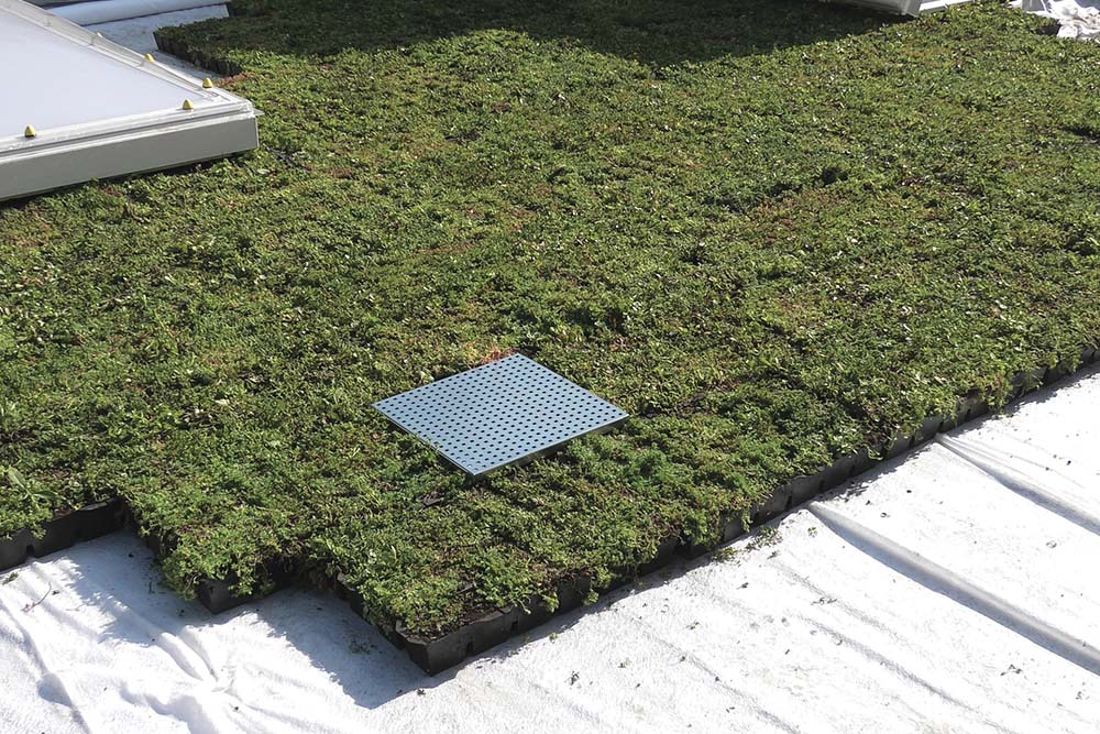 MatGeco, al meer dan 30 jaar gespecialiseerd in drainageoplossingen, biedt een volledig gamma producten voor elke dakconfiguratie. De drainagemat RoofDrain ST12 combineert drainage, wateropslag en mechanische bescherming in één product. Het drainagemembraan DrainoTech G20, met noppen van 20 mm, garandeert een hoog drainerend vermogen en een wateropslag van 6 l/m². De voorgekweekte platen Sedum StockDrain, klaar voor plaatsing, maken het mogelijk om een dak onmiddellijk te vergroenen.