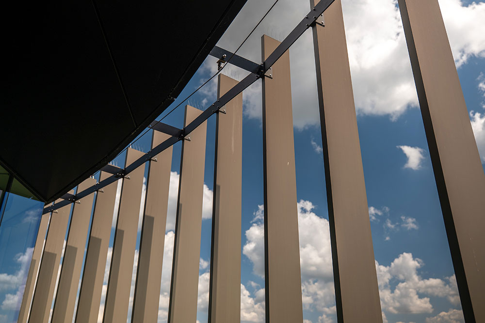 Samen met DUCO werd elk detail uitgepuurd: van de ritmiek van de lamellen tot de tint die de warme gloed van het metaal accentueert. Het resultaat is een gevel die meebeweegt met de zon, het binnenklimaat verzacht en tegelijk een spel van licht en schaduw tovert op de werkvloer.
